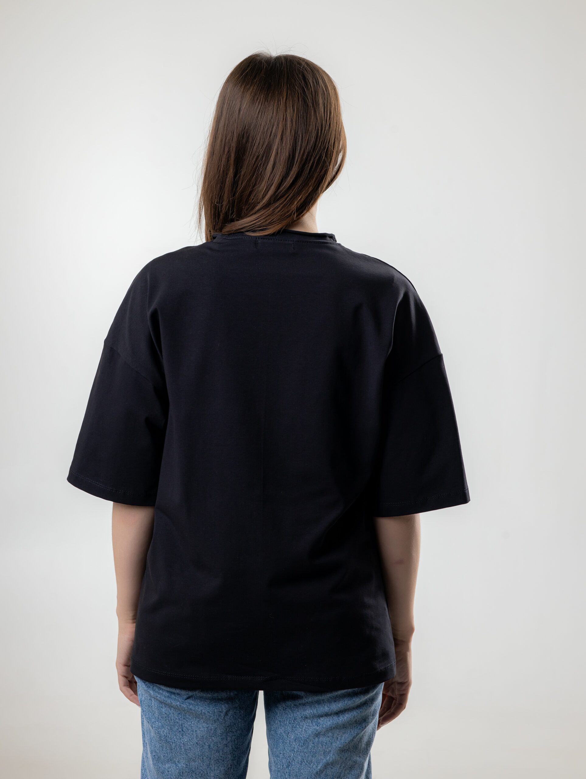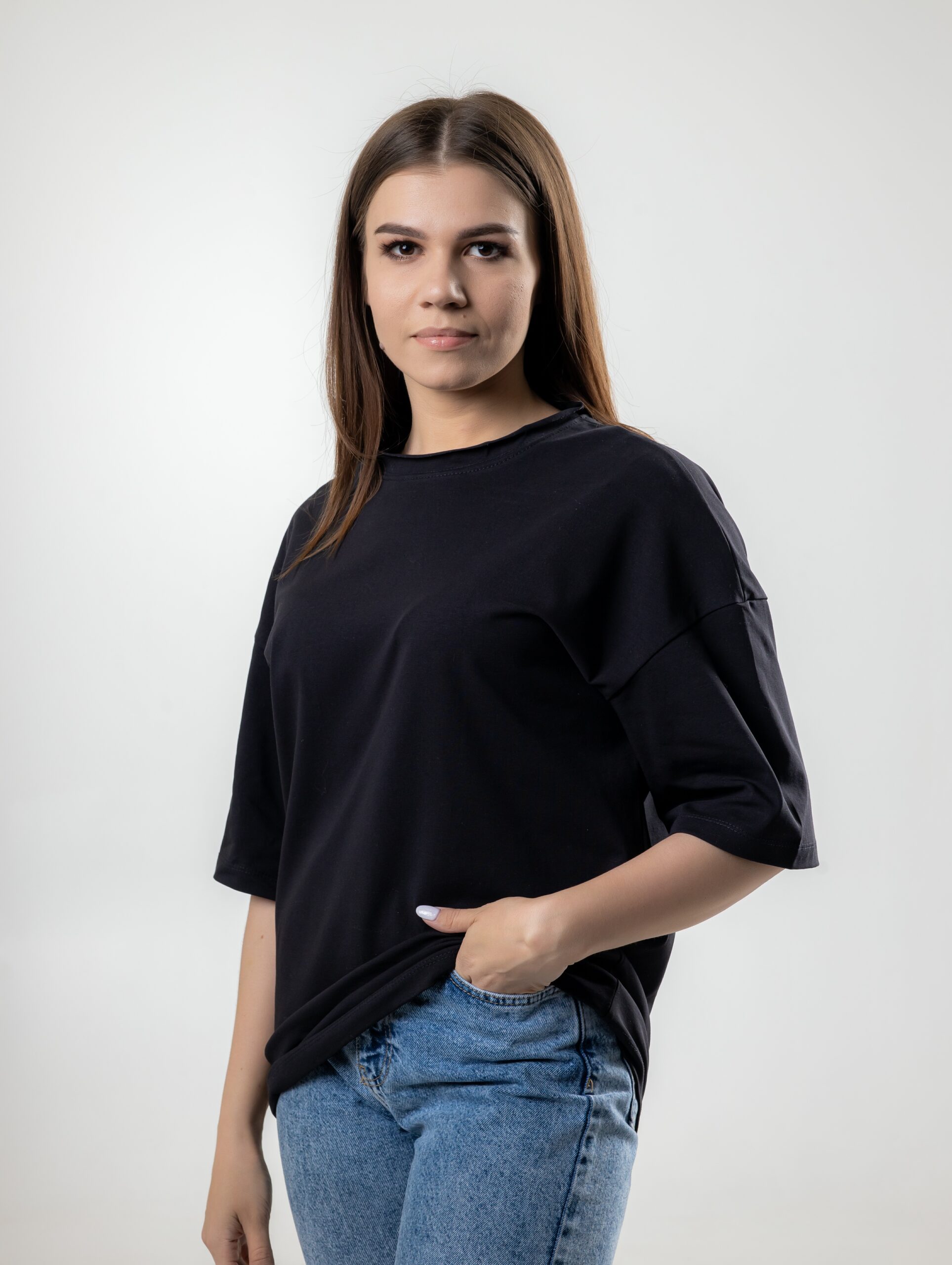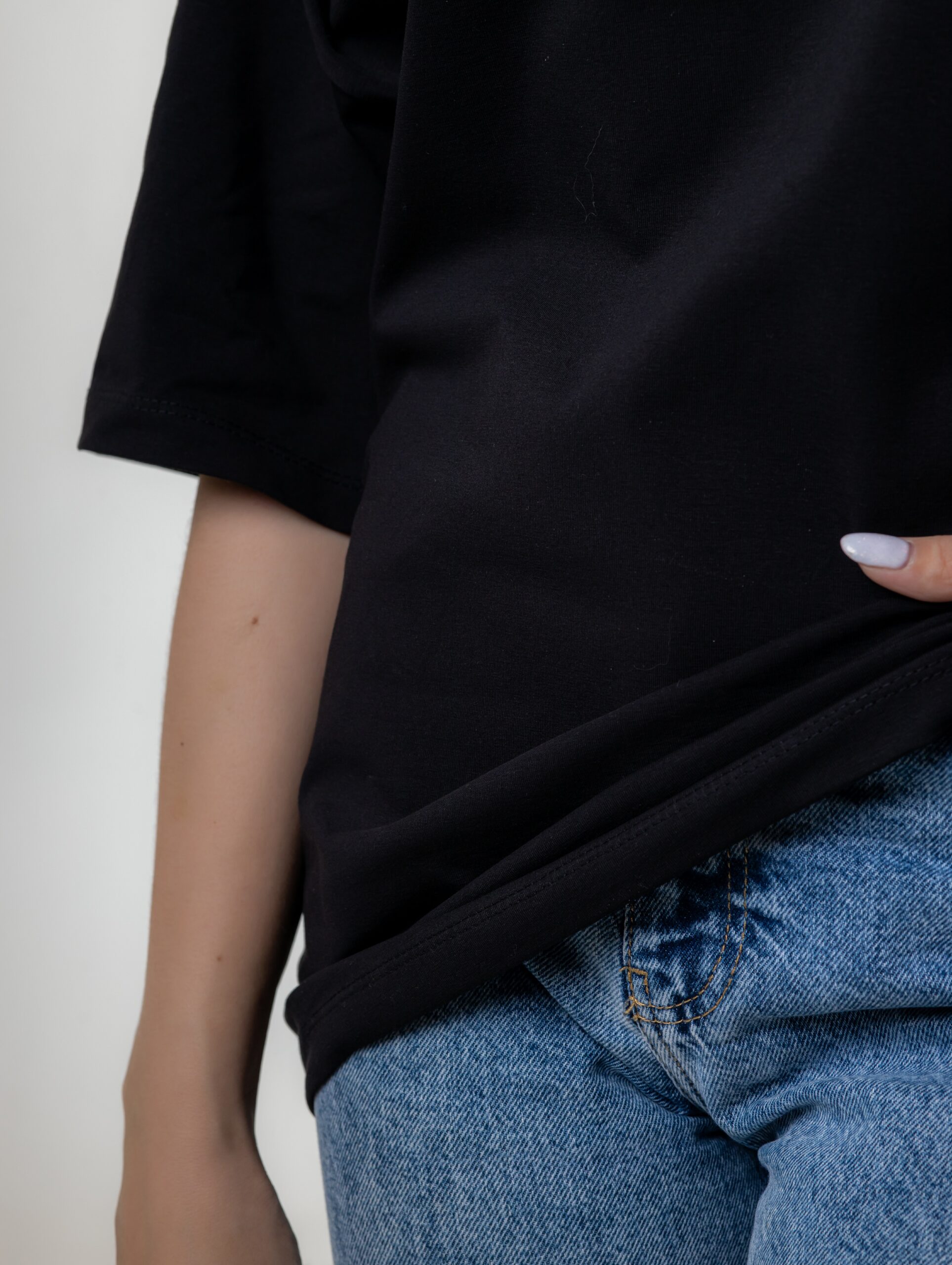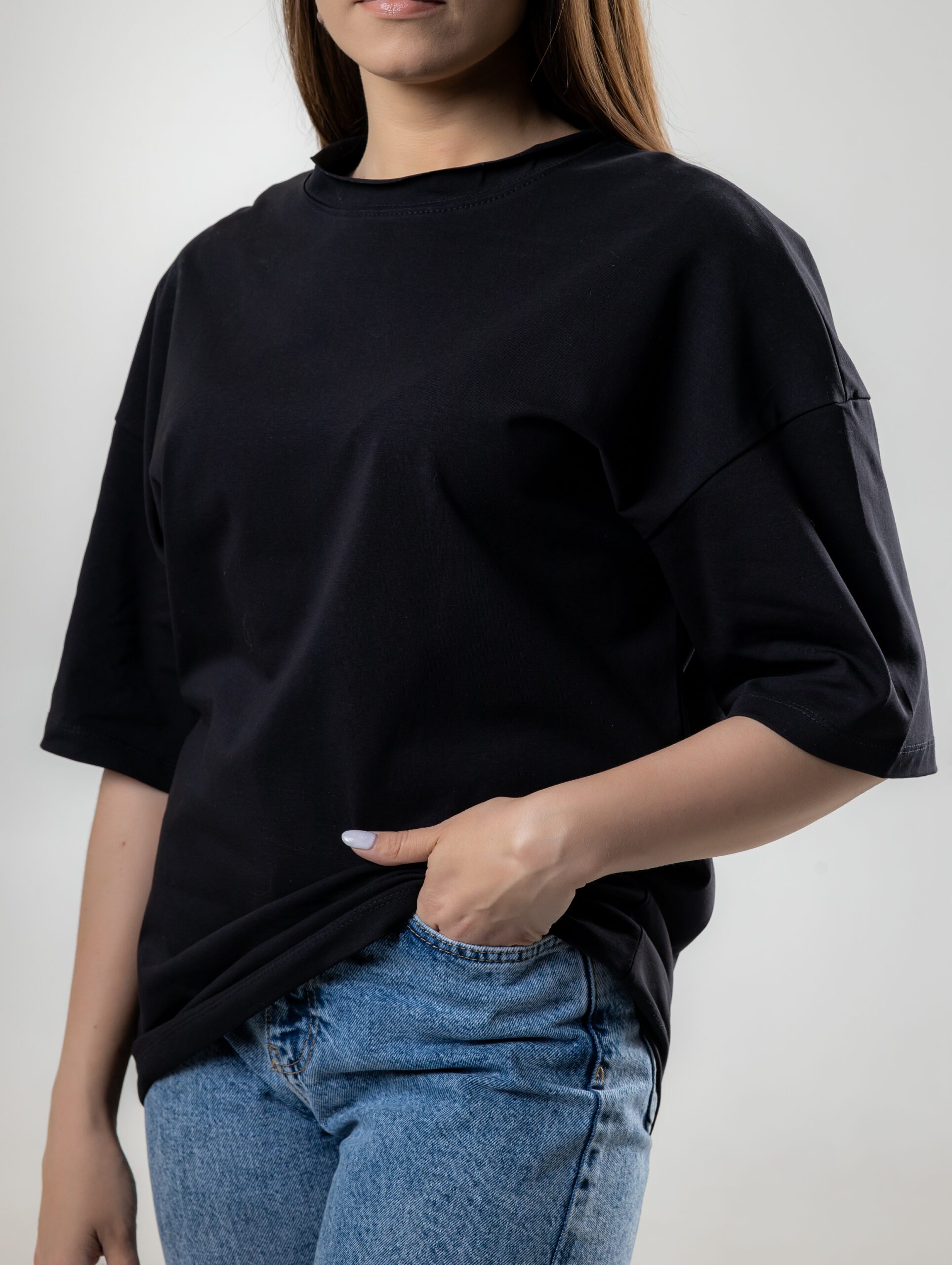 Футболка из плотного качественного хлопкового трикотажа, не просвечивает. Состав: 95% хлопок, 5% лайкра. Оверсайз. Унисекс. Ширина футболки 50,5см.