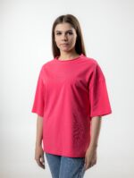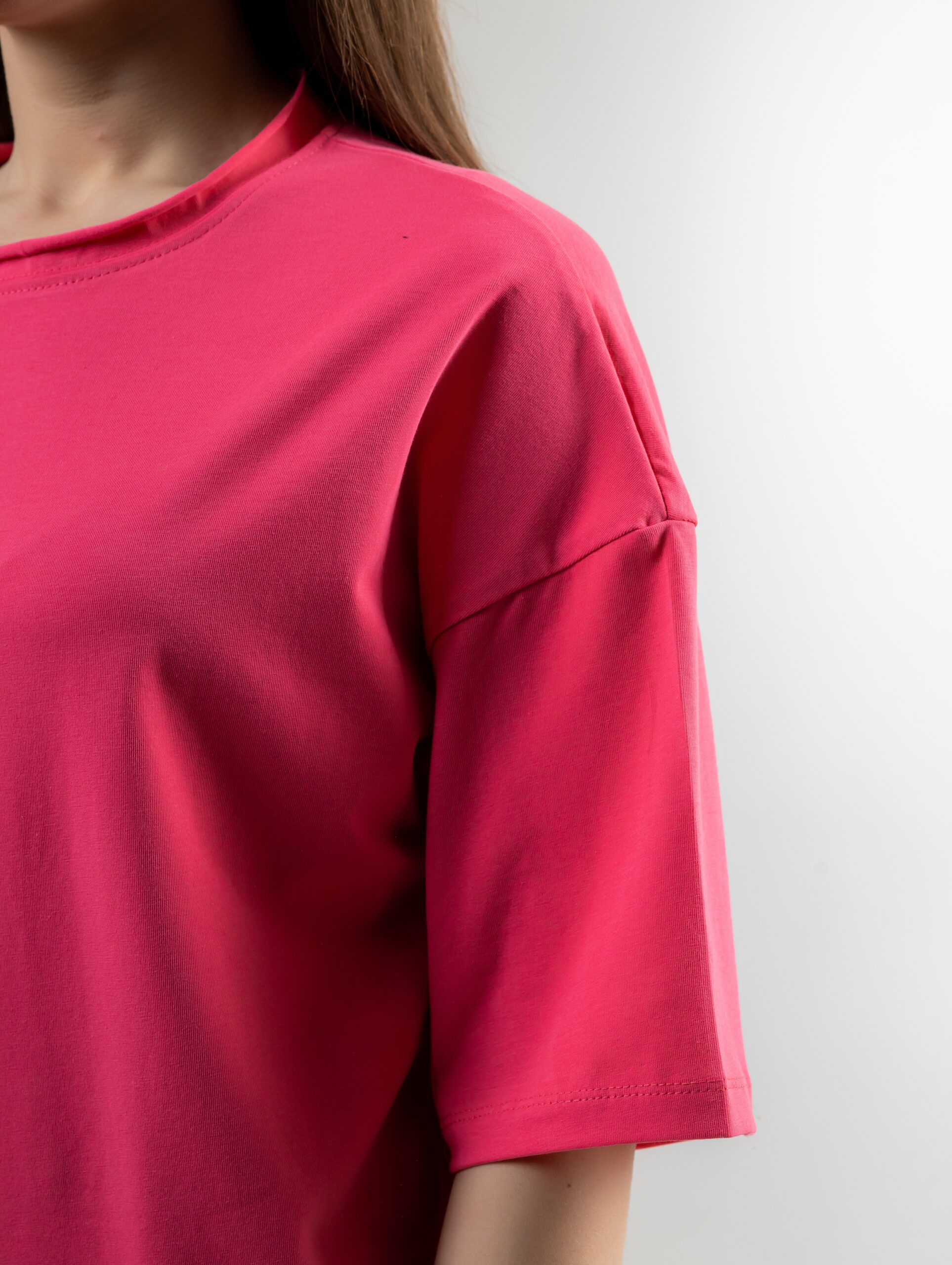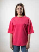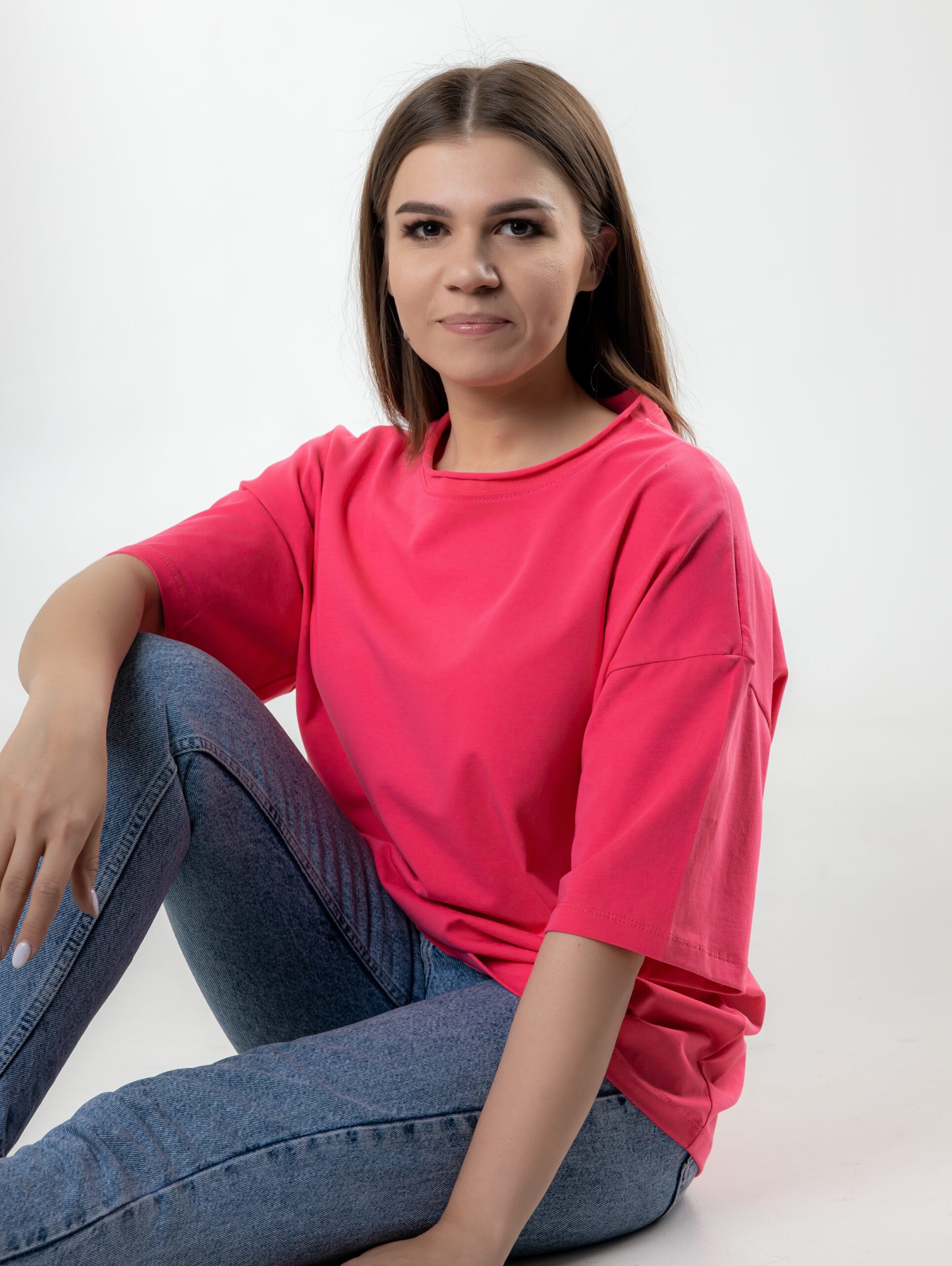 Футболка из плотного качественного хлопкового трикотажа, не просвечивает. Состав: 95% хлопок, 5% лайкра. Оверсайз. Унисекс. Ширина футболки 54см.