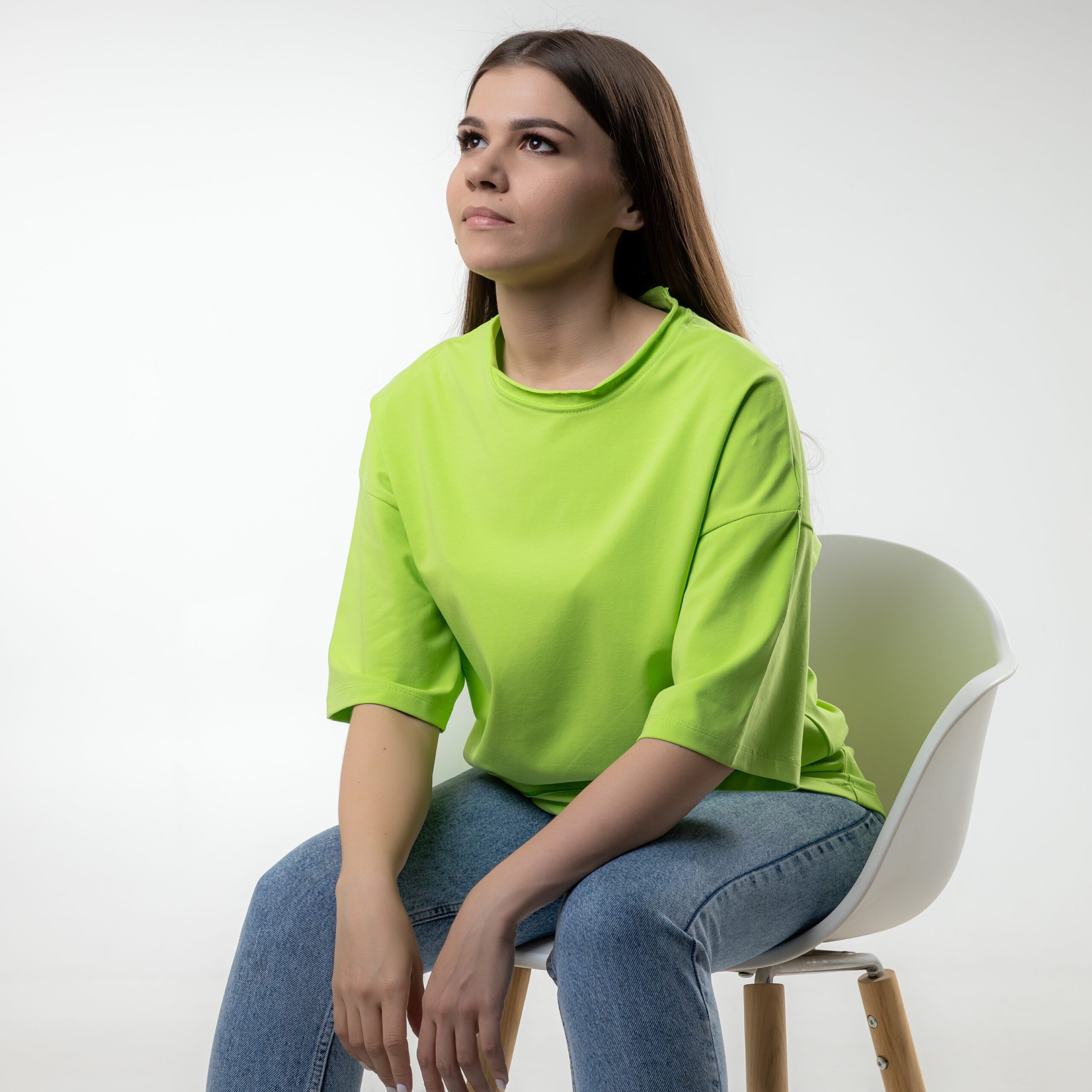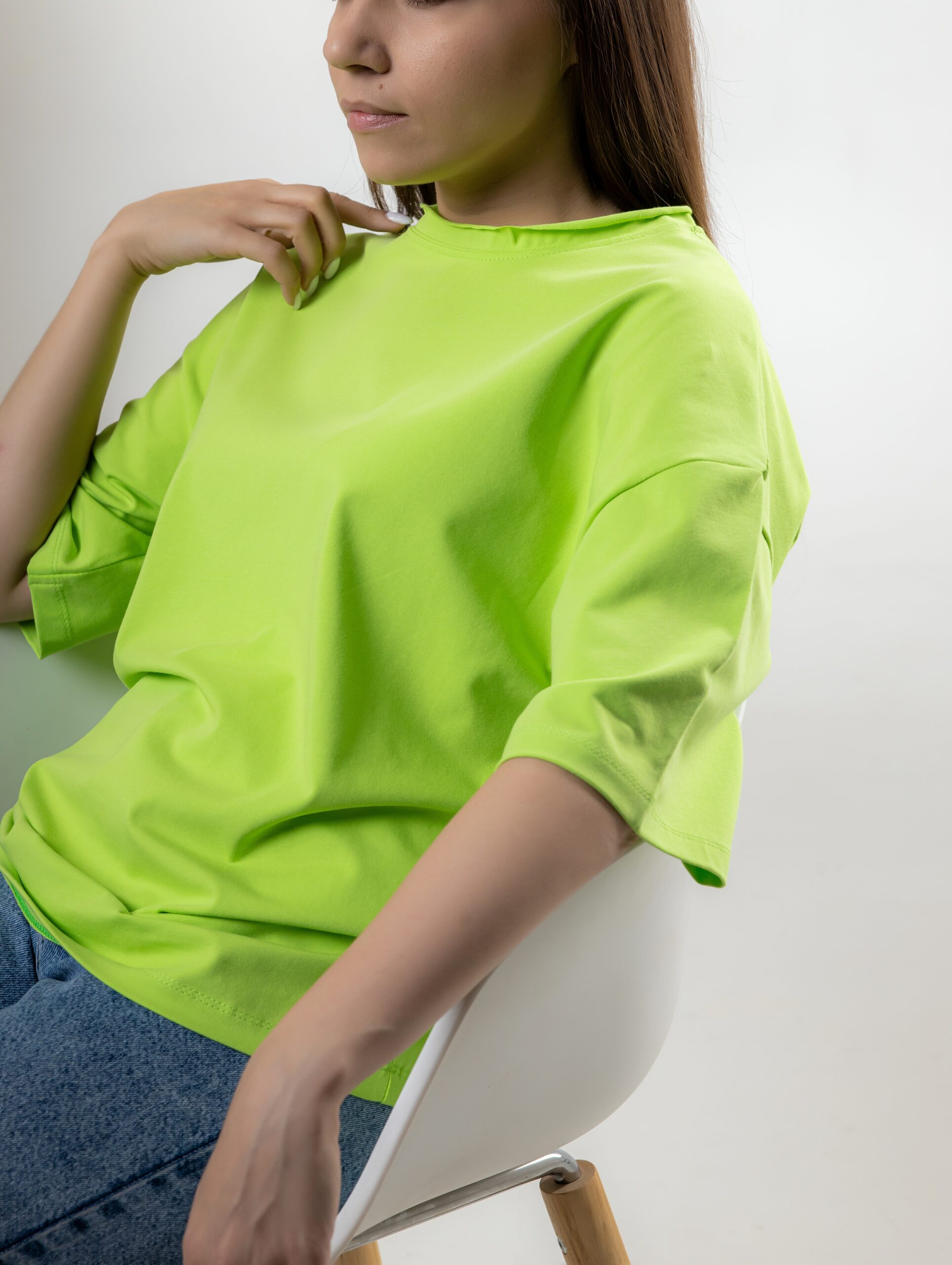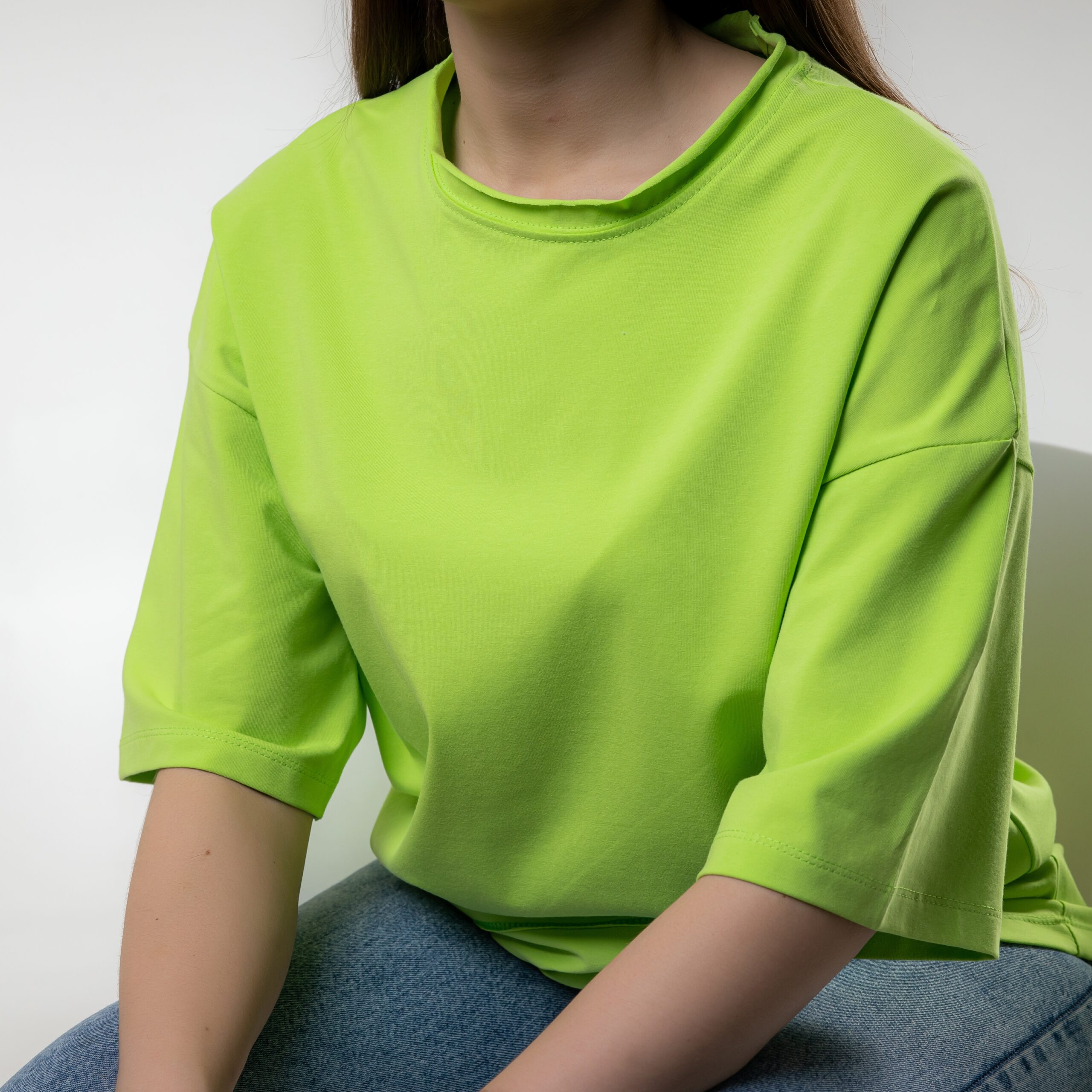 Футболка из плотного качественного хлопкового трикотажа, не просвечивает. Состав: 95% хлопок, 5% лайкра. Оверсайз. Унисекс. Ширина футболки 54см.