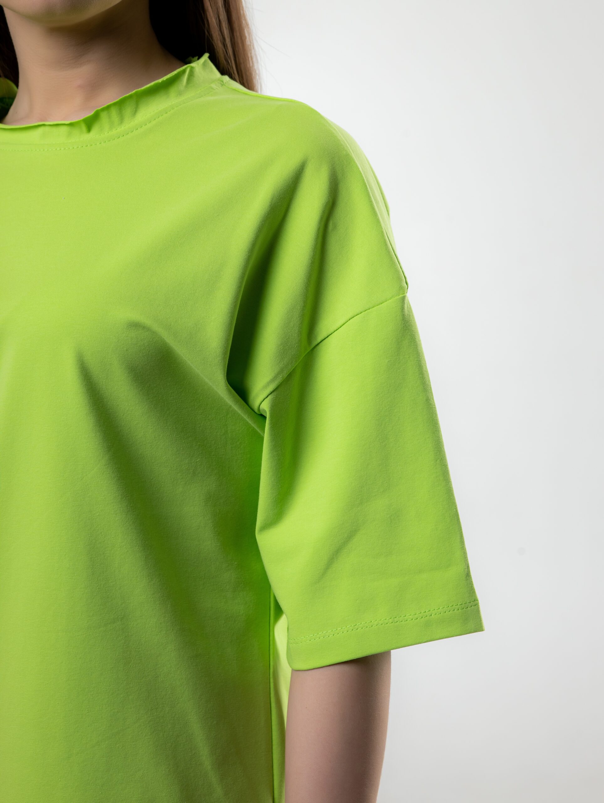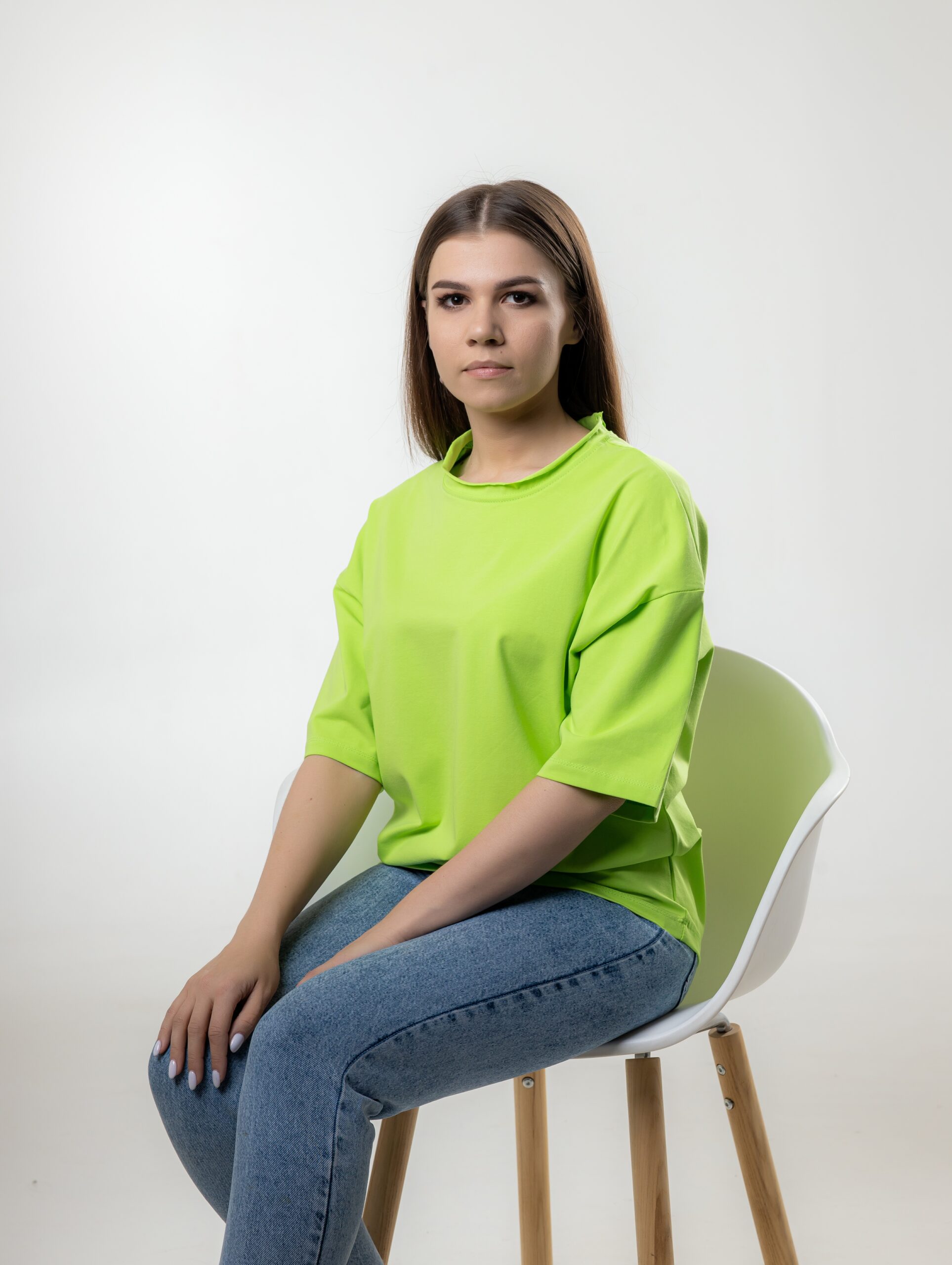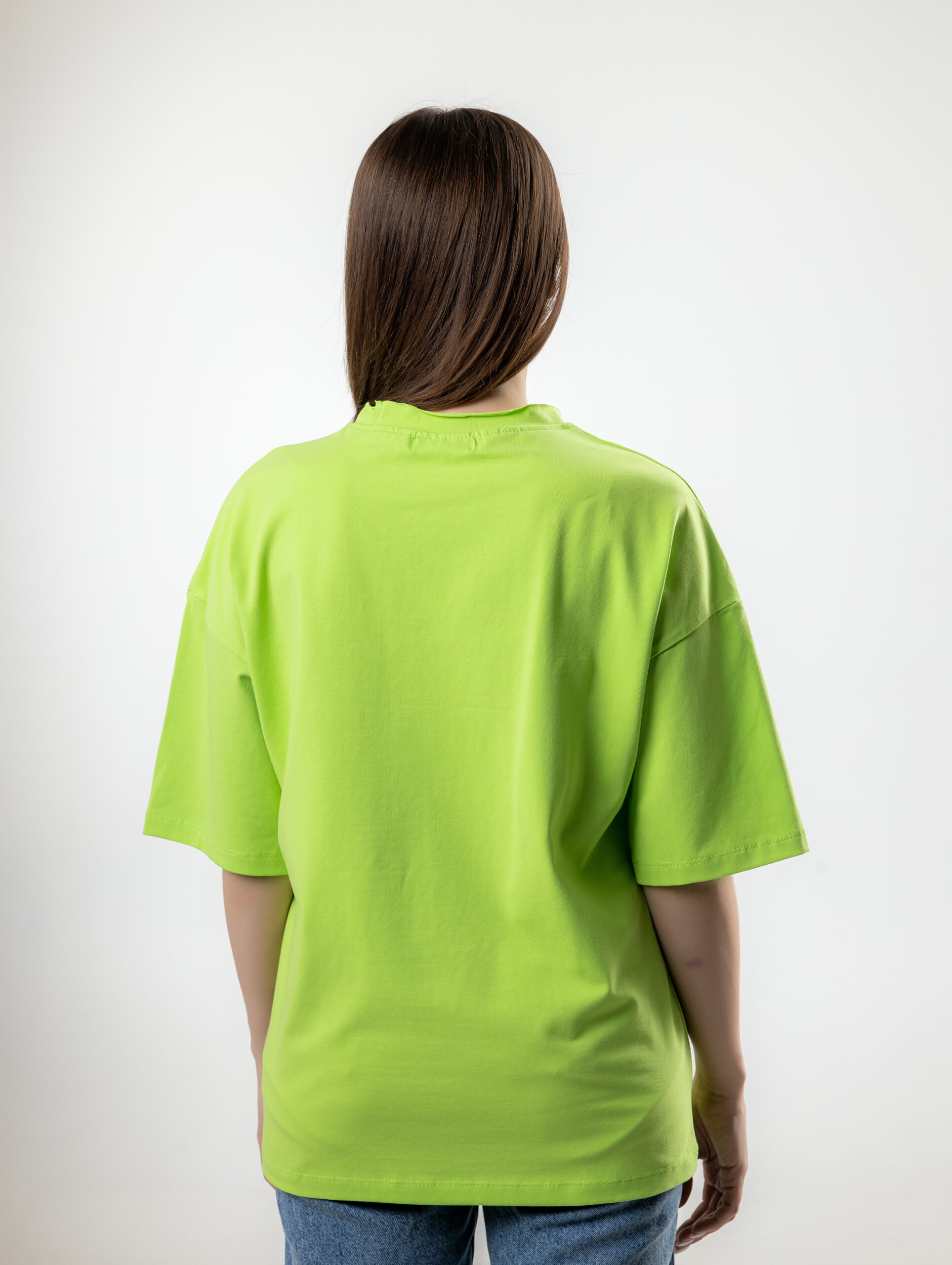 Футболка из плотного качественного хлопкового трикотажа, не просвечивает. Состав: 95% хлопок, 5% лайкра. Оверсайз. Унисекс. Ширина футболки 54см.
