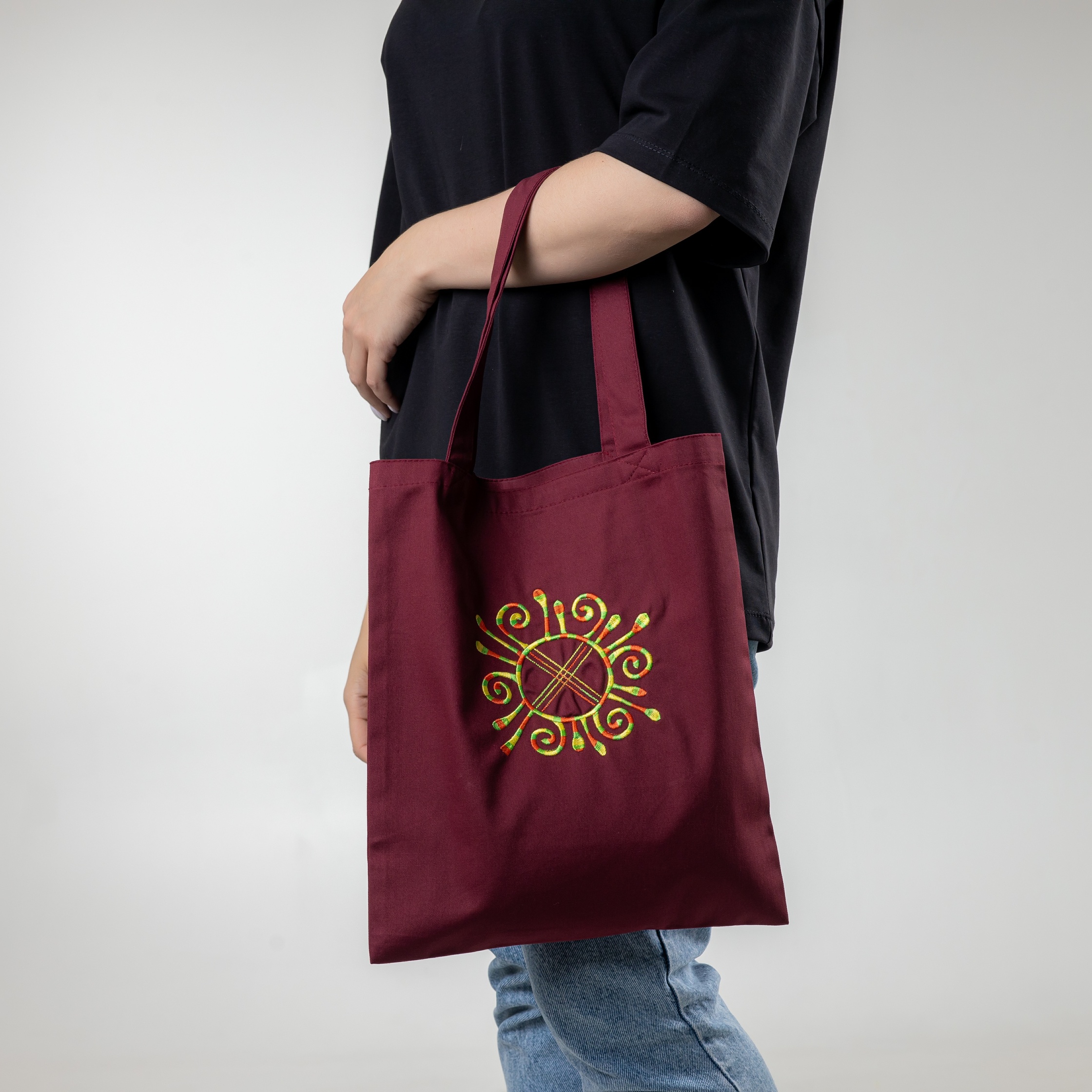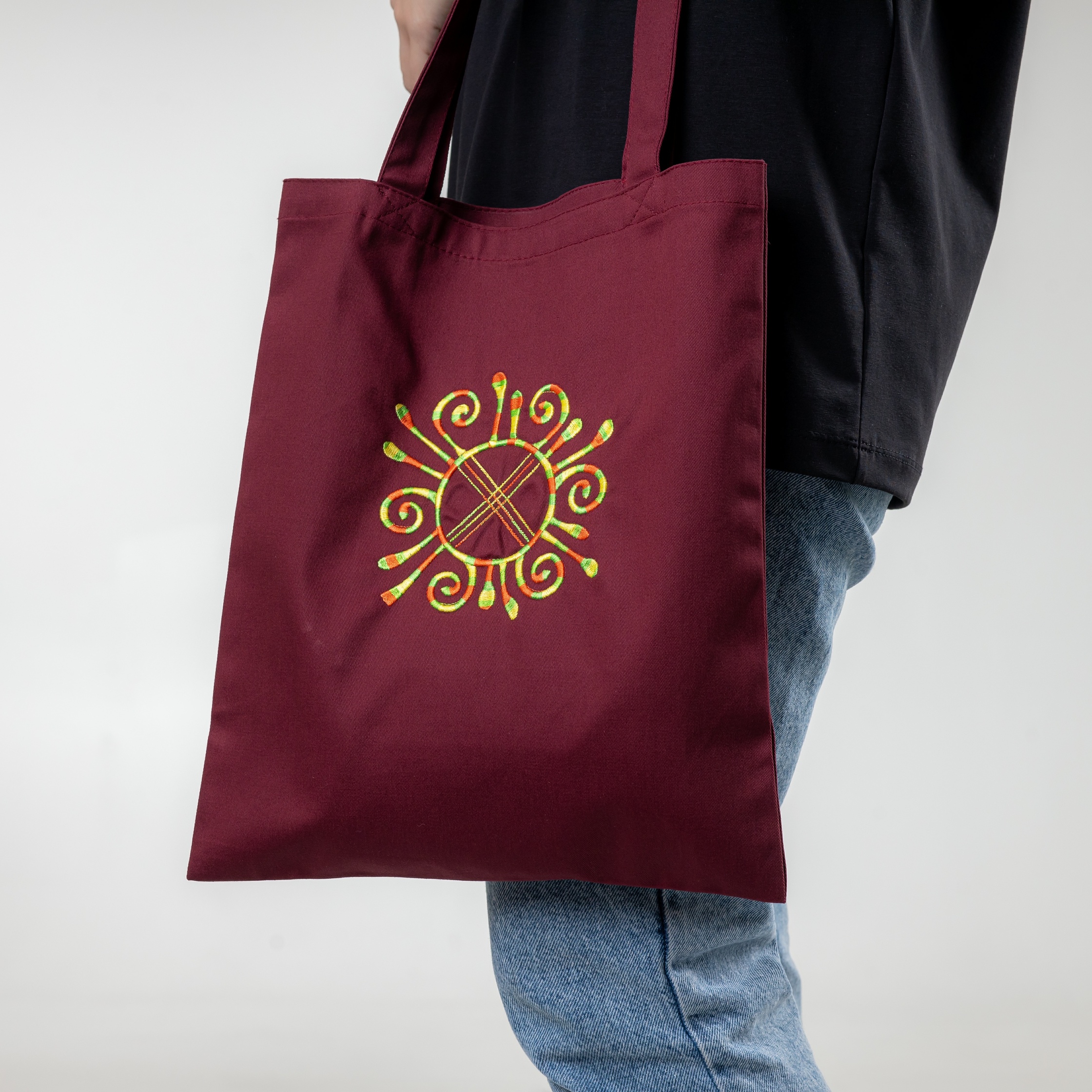 Бордовый шоппер из плотной хлопковой ткани. Внутри имеется карман для телефона. Вышивка.